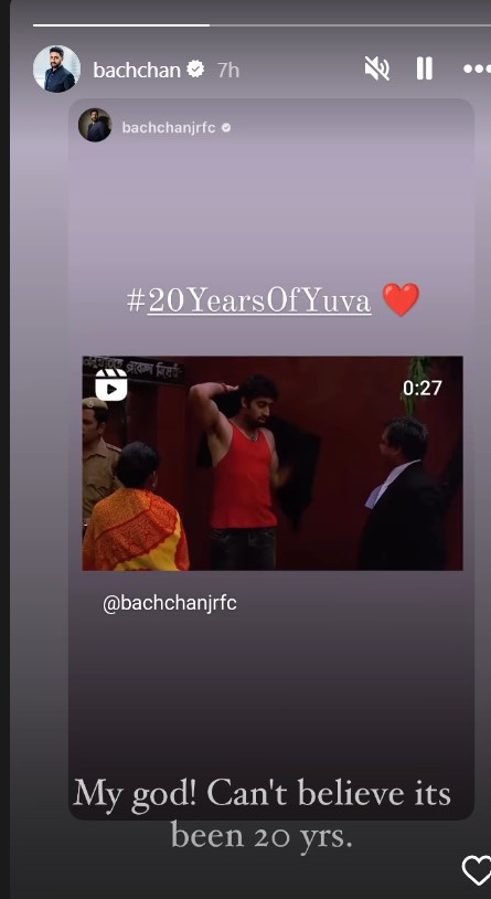 'युवा' फिल्म को आज 20 साल पूरे हो चुके हैं। अभिषेक बच्चन ने अपने रोल की कुछ क्लिपिंग्स शेयर कीं। इसी के साथ टाइम्स की रिपोर्ट में इस बात का खुलासा किया गया है कि उनका कैरेक्टर पहले कौन प्ले करने वाला था। जानकारी के अनुसार, मणि रत्नम 'ललन' के रोल के लिए ऋतिक रोशन (Hrithik Roshan) को कास्ट करना चाहते थे। उन्हें रोल ऑफर भी हुआ था।