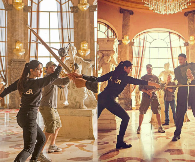 फ़िल्म रेस 2 में आपने श्री लंकन ब्यूटी जैकलिन को भी तलवारबाज़ी करते हुए देखा होगा और यहां उनके साथ सैफ़ अली ख़ान भी थे।