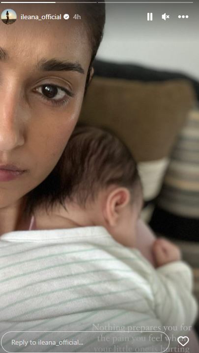 इलियाना डिक्रूज (Ileana D'Cruz) ने अपने इंस्टाग्राम स्टोरी पर बेटे संग दो फोटो शेयर की है, इस बार वह कुछ अलग नजर आ रही हैं। तस्वीरों में एक्ट्रेस के चेहरे पर परेशानी दिखाई दे रही हैं, क्योंकि उनका बच्चा ठीक नहीं है। पहली फोटो में इलियाना का आधा चेहरा नजर आ रहा है। ऐसे में उनका बच्चा उनके कंधे पर आराम से लेता दिखाई दे रहा है। इस फोटो के कैप्शन में उन्होंने लिखा- जब आपके छोटे बच्चे को दर्द हो रहा हो तो आपको जो दर्द महसूस होता है, उसके लिए कोई भी चीज आपको तैयार नहीं करती है।