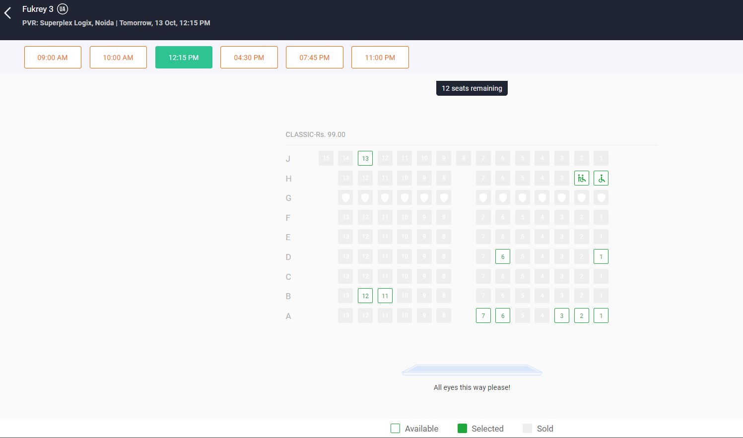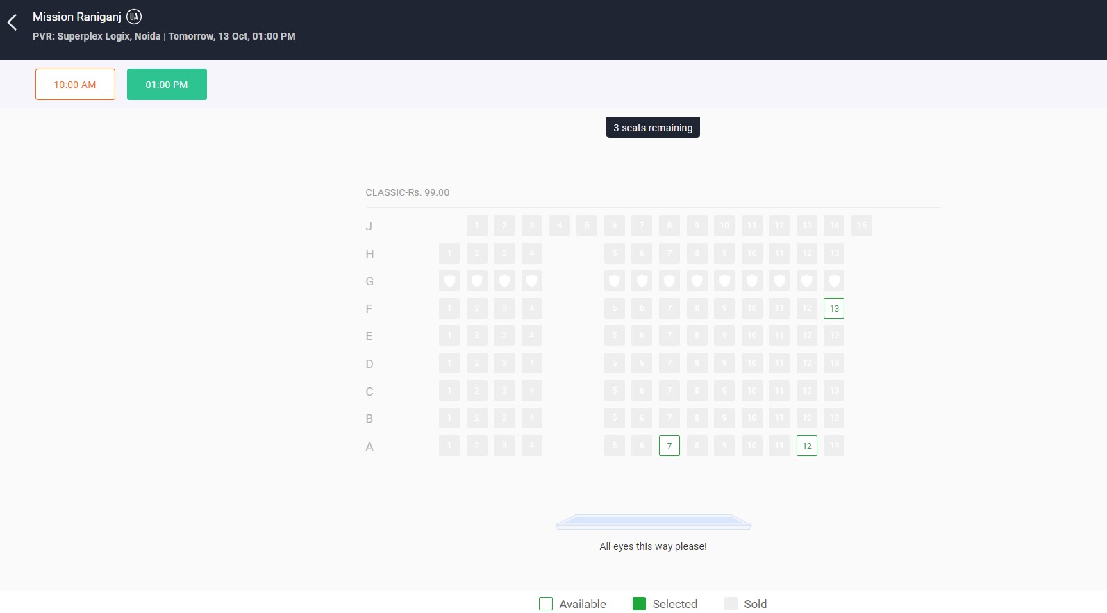 नेशनल फिल्म टिकट बुकिंग साइट बुक माय शो पर जाकर देखें तो फिल्मों के लगभग सारे शो 12 अक्टूबर को ही भर चुके हैं। दिल्ली में जवान, फुकरे 3 और मिशन रानीगंज को लेकर जो, तस्वीर सामने आई वो हैरान करने वाली है। इन सभी फिल्मों लगभग सभी शो के टिकट भर चुकी है।