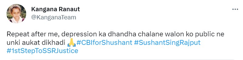 सोशल मीडिया पर कंगना के इस पोस्ट पर कई यूजर्स ने रिएक्ट किया और दोनों की तारीफ की। कंगना रनोट अब तक कई मौकों पर दीपिका पर हमलावर हो चुकी हैं। कुछ साल पहले उन्होंने अप्रत्यक्ष रुप से दीपिका पर मेंटल हेल्थ को लेकर कमेंट किया था। सुशांत सिंह राजपूत केस को लेकर कंगना ने ट्वीट करते हुए कहा था, 'मेरे बाद सब बोलो, डिप्रेशन का धंधा चलाने वालों को पब्लिक ने उनकी औकात दिखा दी।'