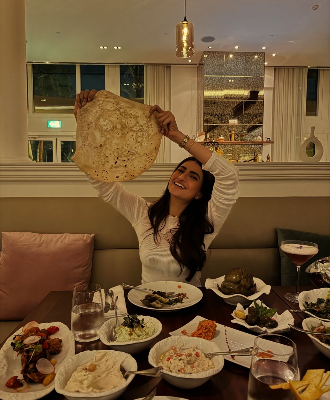 इस फोटो में पलक को दुबई के एक शानदार होटल में बैठी नजर आ रही हैं और अपने सामने रखी खाने की थाली को दिखा रही हैं।