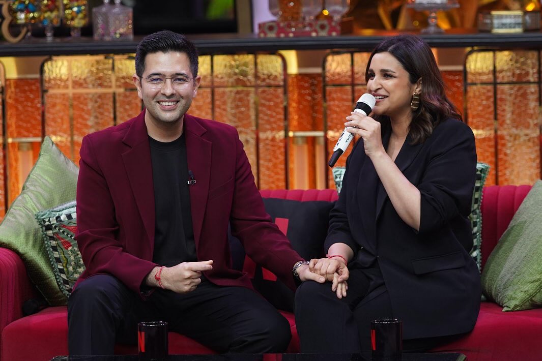 दरअसल, राघव चड्ढा और परिणीति चोपड़ा कपिल शर्मा के कॉमेडी शो द ग्रेट इंडियन कपिल शो (The Great Indian Kapil Show) में आए और इस दौरान उन्होंने कई मजेदार किस्से शेयर किए। इस बीच उन्होंने एक ऐसा हिंट दे दिया जिसने परिणीति को भी दंग कर दिया। हुआ यूं कि लेटेस्ट एपिसोड में कपिल ने कपल के साथ अपना किस्सा शेयर किया कि कैसे जब परिणीति उनके घर आईं तो उनकी मां सीधे ग्रैंडकिड मोड में चली गईं। उन्होंने कपल को या तो जल्दी योजना बनाने या कुछ पारिवारिक दबाव के लिए तैयार रहने की सलाह दी।