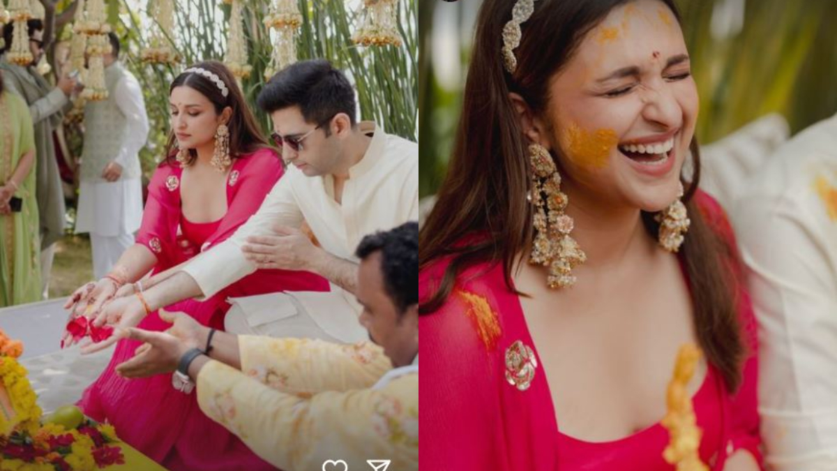 परिणीति चोपड़ा और राघव चड्ढा की बीते महीने 24 सितंबर 2023 को धूमधाम से शादी हुई थी। दोनों के प्री-वेडिंग कुछ फंक्शन्स दिल्ली और कुछ उदयपुर में हुए थे। जिनकी फोटोज धीरे-धीरे सामने आ रही हैं। अब हाल ही में परिणीति चोपड़ा के हल्दी के फंक्शन की कई फोटोज सामने आई हैं जिसमें वह बला की खूबसूरत लग रही हैं लेकिन राघव चड्ढा भी उन्हें टक्कर देते नजर आए।