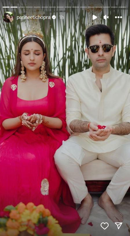 पहली फोटो में जहां परिणीति चोपड़ा पति राघव चड्ढा के साथ पोज कर रही हैं। तो वहीं दूसरी फोटो में दोनों अपनी आंखें बंद कर आने वाली जिंदगी के लिए दुआएं मांगते हुए नजर आ रहे हैं। अन्य फोटो में शादी की तरह ही परिणीति हल्दी सेरेमनी में भी मस्ती कर रही हैं और उनके चेहरे पर हल्दी लगी हुई है।