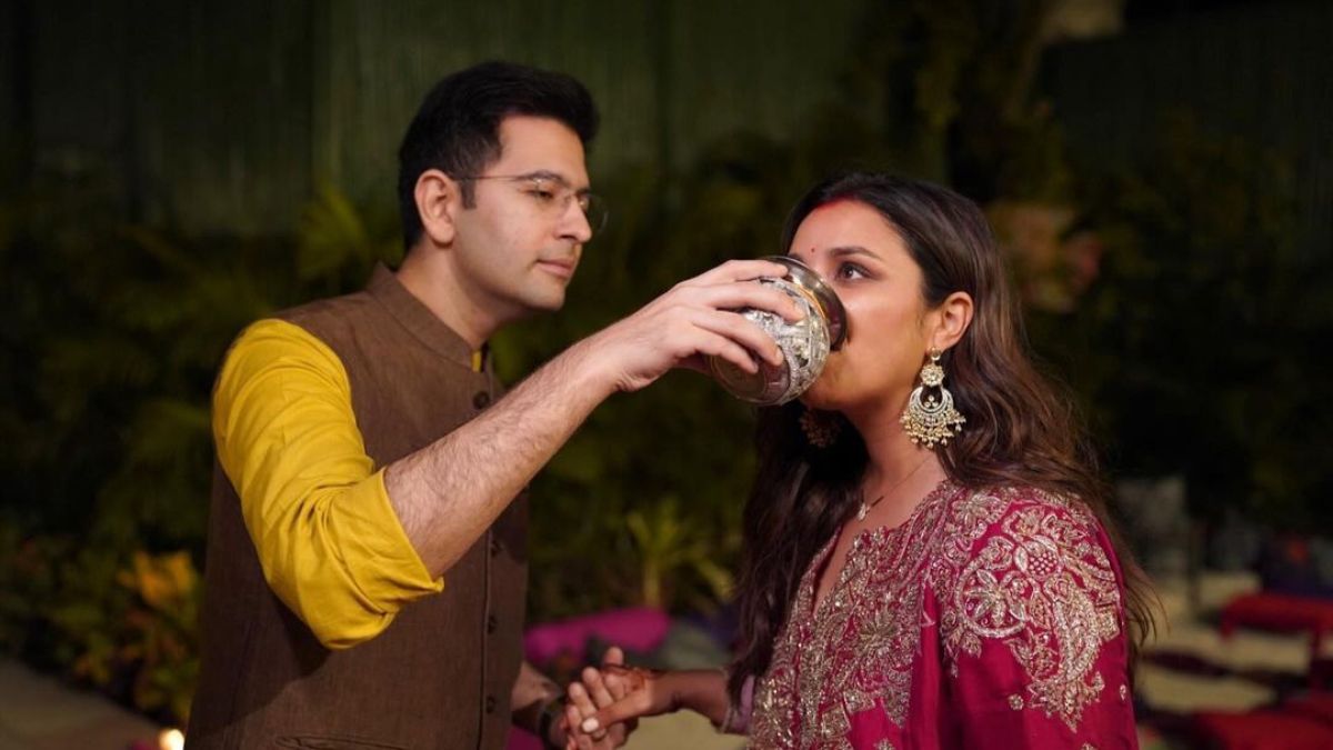 आज पहली करवा चौथ के खास मौके को परिणीति चोपड़ा ने अपने पति राघव चड्ढा के साथ स्टाइल में सेलिब्रेट किया है। इस दौरान परिणीति चोपड़ा और राघव की लेटेस्ट तस्वीरें सोशल मीडिया पर सामने आई हैं।