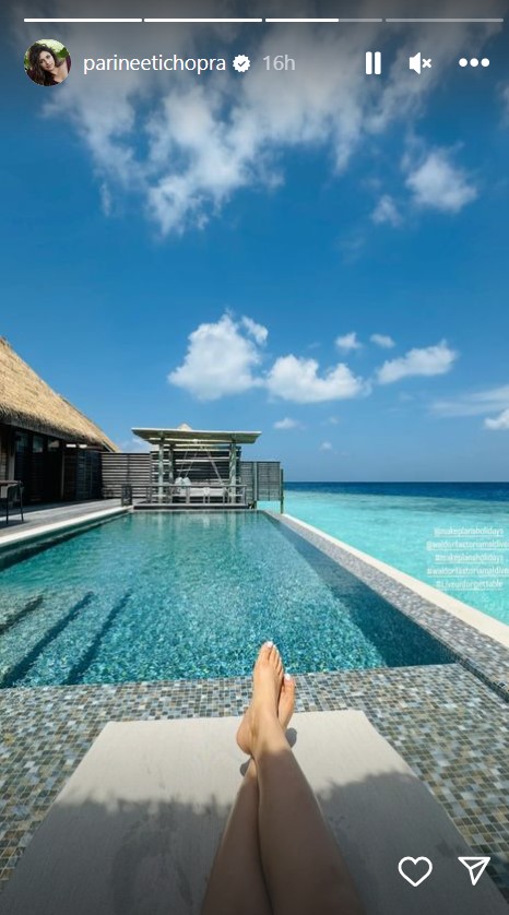 राघव चड्ढा की पत्नी परिणीति चोपड़ा ने शादी के बाद सोशल मीडिया पर कई फोटो और वीडियो शेयर किए। एक्ट्रेस इन दिनों पति और फिल्मों से दूर मालदीव में हॉलीडे एन्जॉय कर रही हैं। इश्कबाज एक्ट्रेस ने वहां से कुछ तस्वीरें शेयर की हैं। परिणीति ने पूल किनारे की अपनी फोटो शेयर की है। इसके साथ ही उस जगह का नजारा भी दिखाया है जहां वह ठकरी हैं।