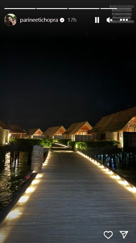 इसके साथ ही उन्होंने रिजॉर्ट की भी फोटो दिखाई है। रात के अंधेरे में साइट्स के साथ रिजॉर्ट कैसा दिखता है, परिणीति ने इसकी ब्युटिफुल फोटो शेयर की है।