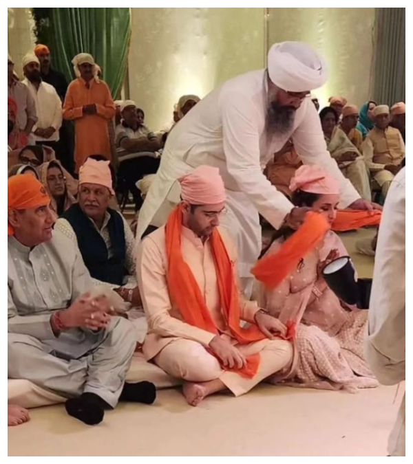 फोटो में राघव और परिणीति दोनों ही पेस्टल पिंक कलर के आउटफिट में नजर आ रहे हैं। परिणीति हाथ जोड़े नजर आ रही हैं। उनके हाथों में राघव के नाम की मेहंदी लगी है। बगल में राघव चड्ढा बैठे हैं। पूरे परिवार की मौजूदगी में इन्होंने वाहेगुरू का आशीर्वाद लिया।