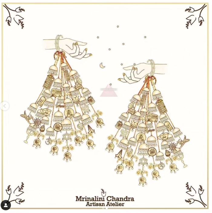 परिणीति चोपड़ा ने अपनी शादी में गोल्डन रंग के कलीरे पहने थे, जिसे मरिनालिनी चंद्रा ने डिजाइन करके एक्ट्रेस के लिए बनाए थे। उन्होंने अपने इंस्टाग्राम हैंडल पर कलीरों की एक फोटो शेयर करते हुए एक स्कैच शेयर किया, जिसमें उन्होंने बताया कि इन कलीरो में राघव चड्ढा और परिणीति चोपड़ा की लव स्टोरीज को कैसे पिरोया गया है।