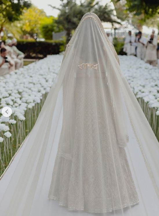 सिंपल प्लेन दुपट्टे पर साइड में गोल्डन रंग से वर्क हो रखा था। साइड में व्हाइट मोती का वर्क था। हालांकि, परिणीति चोपड़ा ने जो ओढ़नी सिर पर ओढ़ रखी थी, उस पर उन्होंने गोल्डन रंग से अपने पति और आम आदमी पार्टी (AAP) के नेता राघव चड्ढा का नाम गुदवाया। जो उनकी सिर पर ओढ़ी चुनरी पर साफ-साफ नजर आ रहा है।