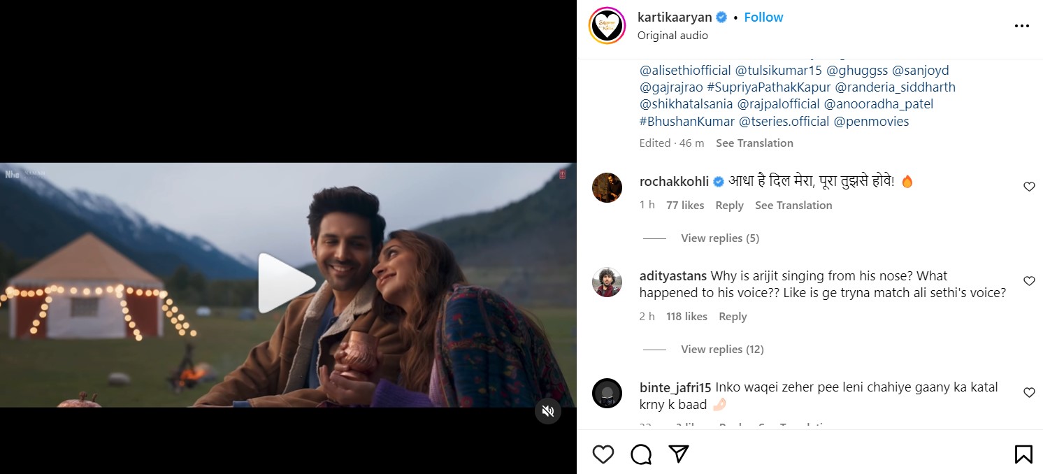 एक अन्य यूजर ने कहा, "इनको वकाई जहर पी लेना चाहिए, गाने का कत्ल करने के बाद।" सत्यप्रेम की कथा की लीड एक्टर्स कार्तिक आर्यन और कियारा आडवाणी की बात करते हुए एक यूजर ने कहा, "मैं आप दोनों से प्यार करता हूं, लेकिन आप लोगों ने ओरिजिनल पसूरी गाने को बर्बाद कर दिया है। ये जैसा था वैसे ही परफेक्ट था।"