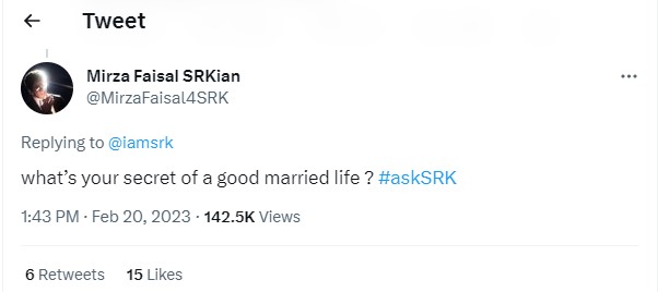 फैन ने पूछा शाह रुख खान की सफल शादी का राज