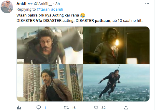 एक अन्य यूजर ने शाह रुख की तुलना बकरे से करते हुए पठान के वीएफएक्स और उनकी एक्टिंग को खराब बताया।