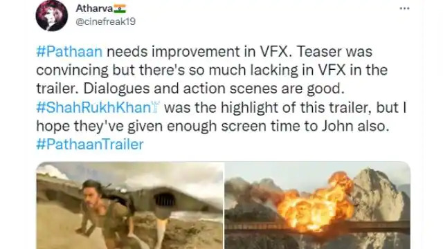 एक यूजर ने लिखा, 'पठान को VFX में सुधार की जरूरत है। टीजर ठीक है, लेकिन ट्रेलर के VFX में बहुत सारी कमियां हैं। वहीं, डायलॉग और एक्टिंग ठीक है।