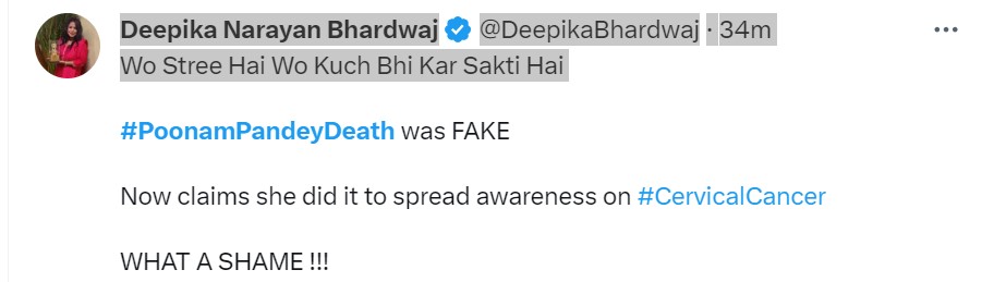 फर्जी मौत की खबर पर Poonam Pandey हुईं बुरी तरह ट्रोल, गुस्साए यूजर्स बोले- वो स्त्री है कुछ भी कर सकती है