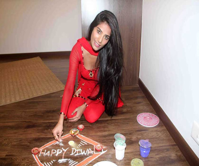 वैसे तो पूनम अक्सर अपनी हॉट ड्रेसेज में नजर आती हैं। इस बार वो लाल सूट पहने नजर आ रही हैं। इस फोटो में वो रंगोली बनाती दिखाई दे रही हैं। रंगोली के साथ उन्होंने हैप्पी दिवाली लिख कर अपने प्रशंसकों को त्योहार की शुभकामनाएं दी हैं।