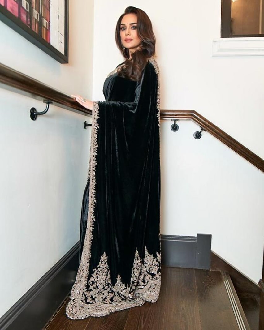 इस दिवाली आप प्रीति की तरह ब्लैक वेलवेट साड़ी भी कैरी कर सकती हैं। इस साड़ी में प्रीति जिटां बेहद खूबसूरती नजर आ रही है। उनके ट्रेडिशनल लुक पर हर किसी की नजरें टिक जाती है।