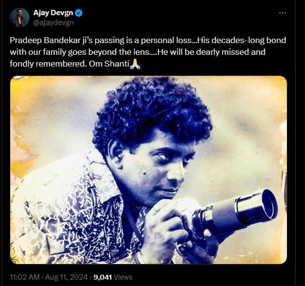 अजय देवगन ने एक्स पर लिखा, ‘प्रदीप बांदेकर जी का निधन एक निजी क्षति है। हमारे परिवार के साथ उनका दशकों पुराना रिश्ता लेंस से परे है। उनकी कमी हमेशा खलेगी और उन्हें हमेशा याद किया जाएगा। ओम शांति।’