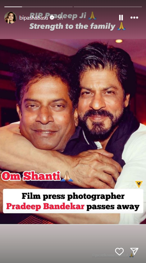 बिपाशा बसु ने इंस्टाग्राम पर प्रदीप बांदेकर के निधन पर प्रतिक्रिया देते हुए लिखा, "आरआईपी प्रदीप जी। परिवार को ताकत।"