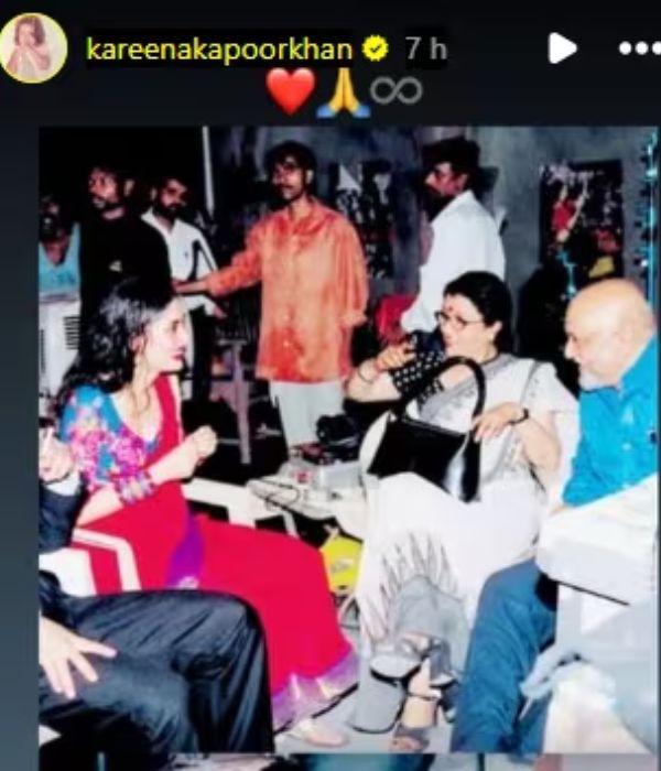 अभिनेत्री करीना कपूर ने फिल्म के सेट से एक पुरानी तस्वीर शेयर की। बता दें कि यह तस्वीर चमेली फिल्म की शूटिंग के दौरान की है। इसमें एक्ट्रेस को चमेली की लुक में देखा जा सकता है। इसमें वह प्रीतिश नंदी के साथ मुस्कुराते हुए भी नजर आ रही हैं। इस फोटो के साथ उन्होंने इंस्टाग्राम स्टोरी पर दिल और हाथ जोड़ने वाली इमोजी लगाई।