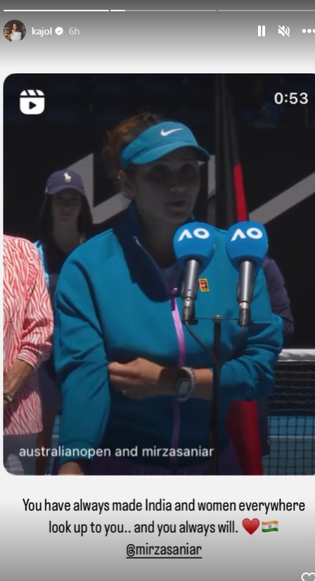 'सलाम वेंकी' एक्ट्रेस काजोल ने ट्विटर पर सानिया मिर्जा को लेकर अपने थॉट्स शेयर किए। उन्होंने लिखा, 'आप हमेशा भारत और महिलाओं के लिए इंस्पिरेशन रहीं हैं... और आप हमेशा जीतती रही हैं।'