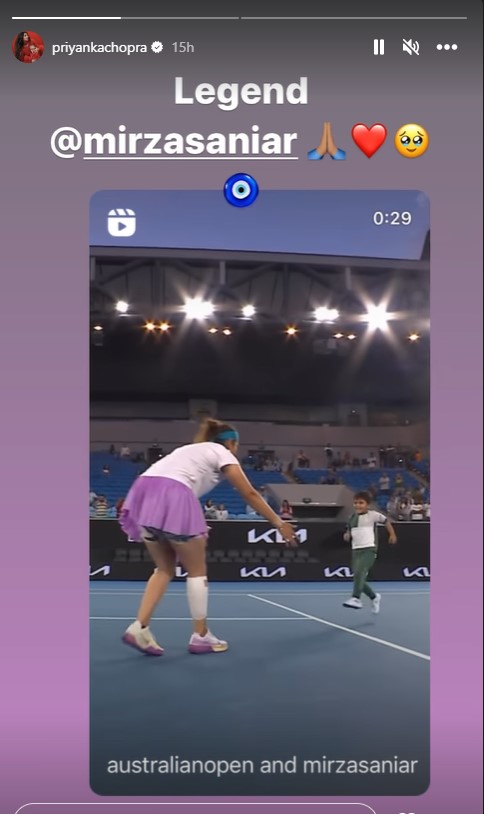 इंस्टाग्राम स्टोरी पर ग्लोबल स्टार प्रियंका चोपड़ा ने सानिया मिर्जा का उनके बेटे इजहान मिर्जा मलिक के साथ वीडियो शेयर किया। उन्होंने लिखा, '@Legend @mirzasaniar'