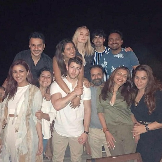 प्रियंका चोपड़ा और निक जोनास की शादी में महज कुछ दिन बाकी रह गए हैं। जोधपुर में होने वाले शादी से जुड़े सभी आयोजनों का तैयारियों चल रही हैं। निक और प्रियंका मुंबई में हैं जहां पर दोनों सोमवार रात पार्टी की। इस मौके पर प्रियंका चोपड़ा के होने वाले पति निक जोनास के भाई जो जोनास और उनकी गर्लफ्रेंड और मंगेतर सोफी टर्नर भी उनके साथ मौजूद थी। इस खास अवसर की एक तस्वीर भी कैमरे में कैद की गई, जो कि अब सोशल मीडिया पर वायरल हो रही है। इस तस्वीर में परिणीति चोपड़ा और मुश्ताक शेख भी नजर आ रहे हैं।