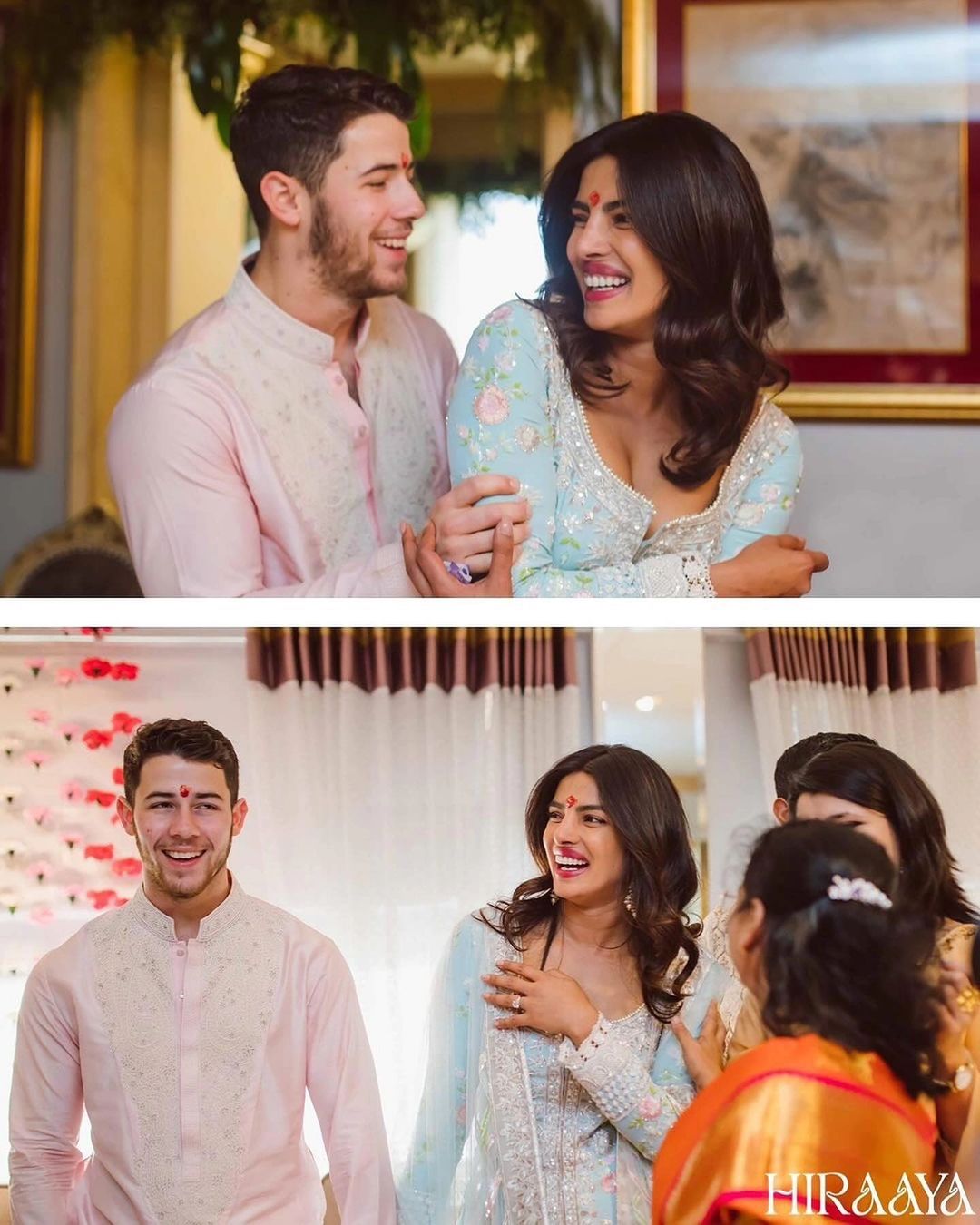 पहली फोटो में ब्लू प्रिंटेड सिम्पल सूट में प्रियंका बेहद ही खूबसूरत लग रही हैं। वह एकटक निक को देख रही हैं, तो वहीं दूसरी फोटो में निक और प्रियंका खिल खिलाकर मुस्कुरा रहे हैं।