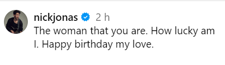 निक के इस पोस्ट पर उनके फैंस ने भी अपना रिएक्शन दिया है। एक यूजर ने लिखा कि इस वजह से आप नेशनल जीजू हो। दूसरे ने लिखा कि आप बहुत भाग्यशाली आदमी हैं जीजू। वह सबसे अच्छी हैं। वहीं, तीसरे ने लिखा कि सबसे लकी लड़का और सबसे भाग्यशाली लड़की। जन्मदिन मुबारक हो।