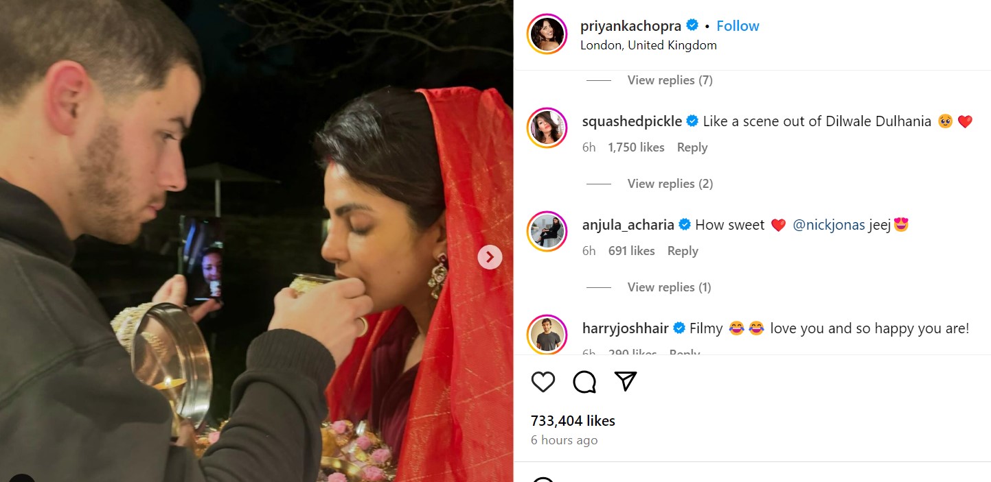 प्रियंका-निक की इन तस्वीरों को देख यूजर्स ने इनकी तारीफ की है। एक ने लिखा- बिल्कुल दिलवाले दुल्हनिया की तरह लग रहा है ये सीन।