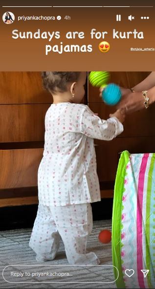 प्रियंका चोपड़ा ने मालती की एक और फोटो अपनी इंस्टा स्टोरी पर शेयर की, जिसमें सफेद डॉट रंग के कुर्ते-पायजामे में मालती बेहद ही प्यारी लग रही हैं। ग्लोबल आइकॉन प्रियंका चोपड़ा की लास्ट अमेजन प्राइम वीडियो पर रिलीज हुई सीरीज 'सिटाडेल' को लोगों का बहुत प्यार मिला था।