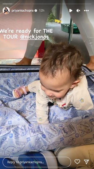 प्रियंका चोपड़ा ने कुछ घंटों पहले मालती की इंस्टाग्राम पर एक स्टोरी शेयर की, जिसमें देसी गर्ल अपकमिंग ट्रिप की तैयारी कर रही हैं और मालती सूटकेस में बैठी हुई हैं। इस दौरान मालती मैरी जोनस चोपड़ा ने एथनिक वीयर पहना हुआ है। इस फोटो को शेयर करते हुए प्रियंका चोपड़ा ने कैप्शन में लिखा, "हम टूर के लिए तैयार हैं निक जोनस"।