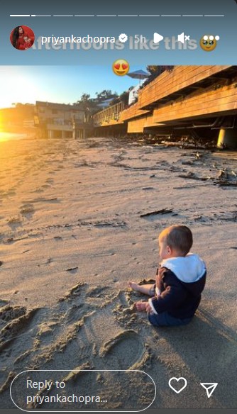 अब हाल ही में प्रियंका चोपड़ा ने अपनी इंस्टा स्टोरी पर अपनी लाडली मालती की एक बेहद ही दिल छू लेने वाली तस्वीर शेयर की है। यह मालती की सिंगल फोटो है, जिसमें वह समंदर किनारे रेत से खेलती हुई नजर आ रही हैं और सनसेट का पूरा आनंद ले रही हैं। इस तस्वीर पर प्रियंका के फैंस खूब प्यार लुटा रहे हैं।
