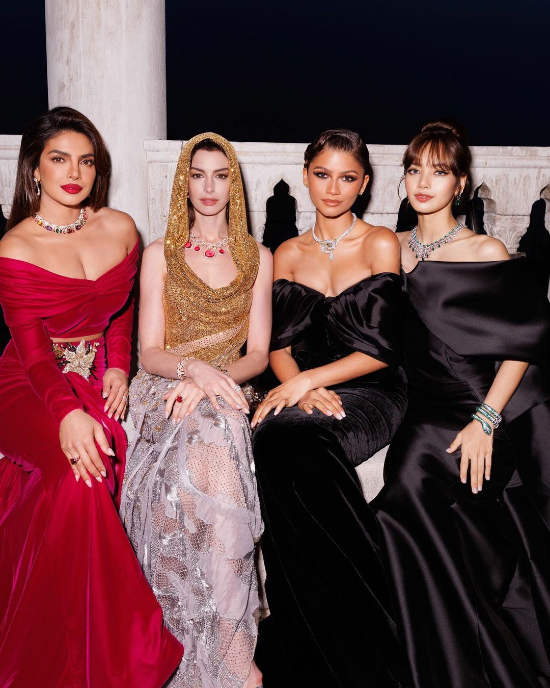 पहली तस्वीर में एक्ट्रेस कैमरे को एकटक निहारते हुए पोज कर रही हैं, तो वहीं दूसरी तस्वीर में वह कार में बैठी हुई हैं। एक अन्य तस्वीर में प्रियंका ने बुलगारी की अन्य ब्रांड एम्बेसडर ऐनी हैथवे और जेंडया के साथ पोज किया।