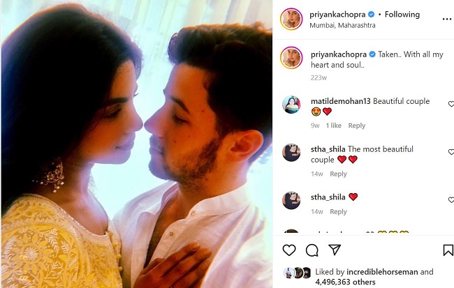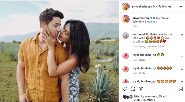 तीसरी डेट के बाद निक जोनस ने प्रियंका चोपड़ा को प्रपोज कर दिया। इसके साथ उन्होंने अपनी इंगेजमेंट की घोषणा एक फोटो के साथ की। उन्होंने लिखा था, 'मैं अपने घुटने पर बैठकर एक बार फिर कहता हूं। क्या आप मुझे दुनिया का सबसे खुशनसीब आदमी बनाकर मुझसे शादी करोगी।' इस पर प्रियंका चोपड़ा ने 45 सेकंड का पॉज लिया था। इसके बाद निक जोनस ने कहा, 'अब मैं यह रिंग आपकी उंगली में पहनाने जा रहा हूं अगर आपको कोई परेशानी नहीं है तो।' दोनों की आयु में देखा जाए तो 10 साल का अंतर है। वहीं दोनों बहुत ही दूर से हैं। दोनों का काम काफी अलग है। दोनों अलग कल्चर से हैं। हालांकि उन्होंने अपने रिश्तें को अवसर दिया और किसी भी रुकावट को उन्होंने अपनी शादी में बाधा बनने नहीं दिया।दोनों ने एक-दूसरे के प्रति की भावना का सम्मान किया है।
