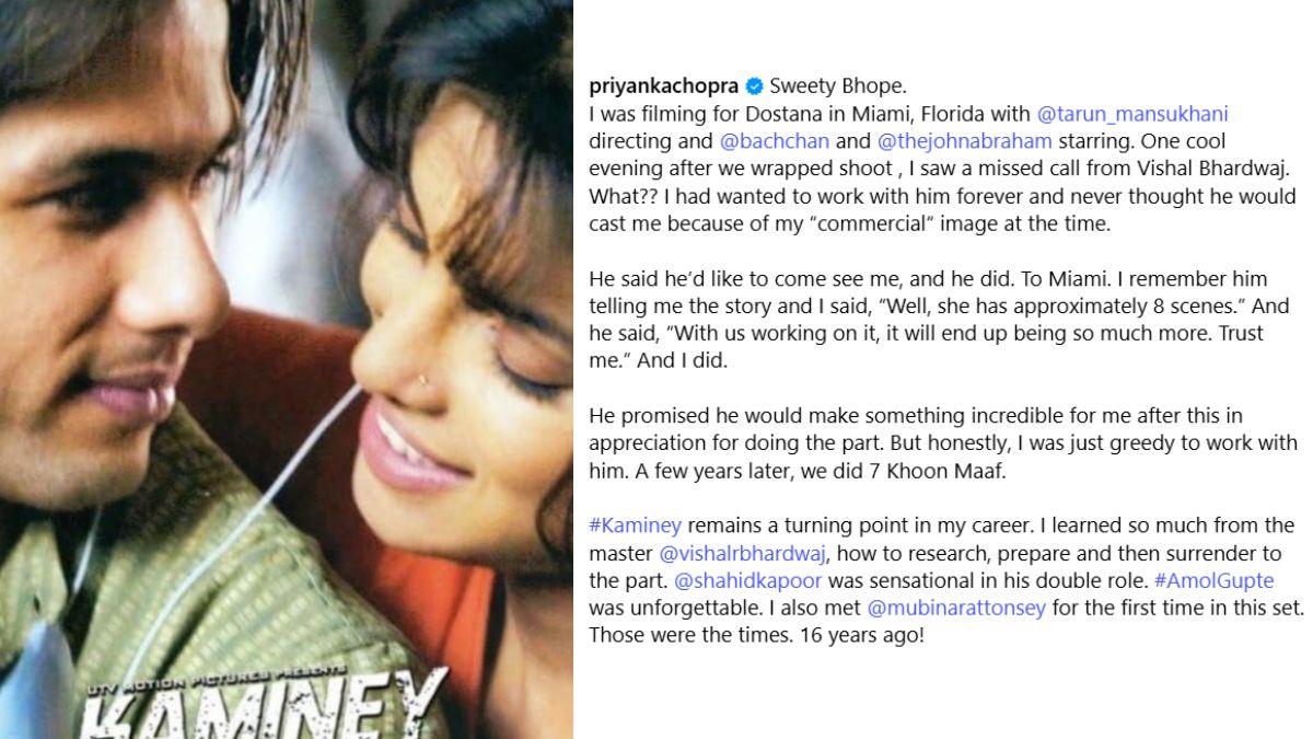 इस खास मौके पर प्रियंका चोपड़ा ने सोशल मीडिया पर एक लेटेस्ट पोस्ट शेयर किया है और बताया है कि किस तरह से निर्देशक विशाल भारद्वाज की ये मूवी उनके हाथ लगी।