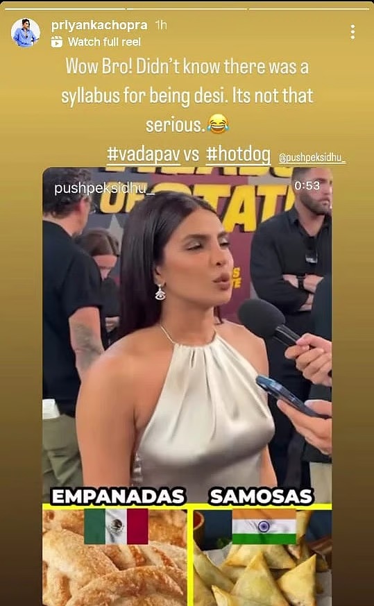 उस वीडियो का एक स्क्रीनशॉट शेयर करते हुए प्रियंका ने लिखा, "वाह भाई। मुझे नहीं पता था कि देसी होने का भी कोई सिलेबस होता है। यह इतना सीरियस भी नहीं है।"