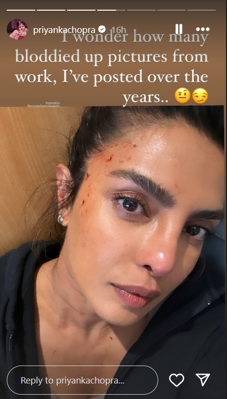 इस बार भी प्रियंका ने ऐसा ही किया। उन्होंने फैंस को सेट पर शूटिंग के दौरान लगी चोट की फोटो शेयर की है। एक्ट्रेस ने सोशल मीडिया पर अपने चेहरे की तस्वीर शेयर की, जिसमें काफी खरोंच नजर आ रही है। चेहरा देखकर ही लग रहा है कि प्रियंका को स्टंट के दौरान बुरी तरह हिट किया गया होगा।