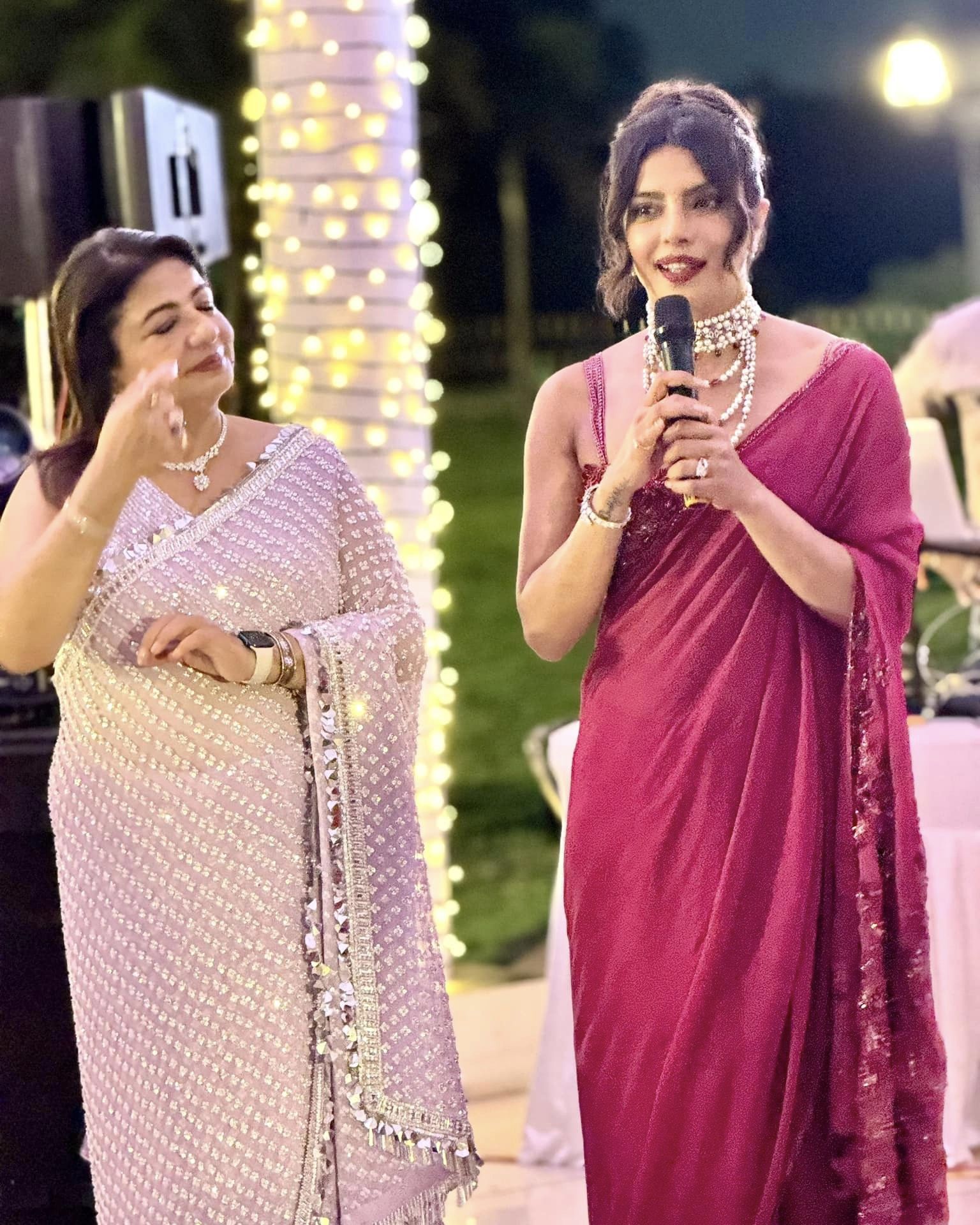 एंटरटेनमेंट डेस्क,नई दिल्ली एक्टर प्रियंका चोपड़ा को बीते 23 अगस्त को मुंबई में स्पॉट किया गया। एक्ट्रेस यहां अपने भाई सिद्धार्थ चोपड़ा की शादी में शामिल होने आई थीं। एक चीज जिसने सभी का ध्यान खींचा वो था देसी गर्ल का लुक। मजेंटा कलर की साड़ी में प्रियंका चोपड़ा बेहद गर्जियस लग रही थीं। एक्ट्रेस के इस लुक को देखकर लोग उनकी तारीफ करते नहीं थक रहे हैं।