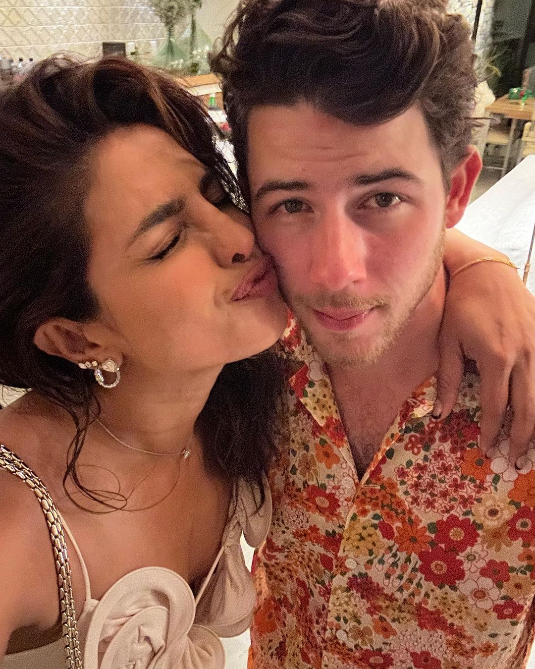 एक फोटो में प्रियंका चोपड़ा पति निक को किस करते हुए नजर आ रही हैं। ये तस्वीर निक के बर्थडे पार्टी की लग रही है। व्हाइट कलर की ड्रेस में हमेशा की तरह देसी गर्ल गजब ढा रही हैं। वहीं, प्रिंटेड शर्ट और पैंट में निक भी कम हैंडसम नहीं लग रहे हैं।