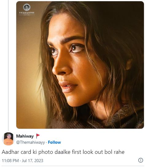एक अन्य यूजर ने तो दीपिका पादुकोण के पोस्टर की तुलना आधार कार्ड की फोटो के साथ कर दी। उन्होंने लिखा, "आधार कार्ड की फोटो डालकर फर्स्ट लुक आउट बोल रहे हैं।