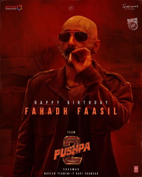 फहाद फासिल 8 अगस्त 2023 को अपना 41वां जन्मदिन मना रहे हैं। उनके बर्थडे के इस खास मौके पर मेकर्स ने उनका फिल्म से पहला लुक रिलीज करके उन्हें सबसे बड़ा गिफ्ट दिया। फहाद पुष्पा-द राइज का भी हिस्सा थे, जिसमें उन्होंने पुलिस ऑफिसर भंवर सिंह शेखावत का किरदार निभाया था।