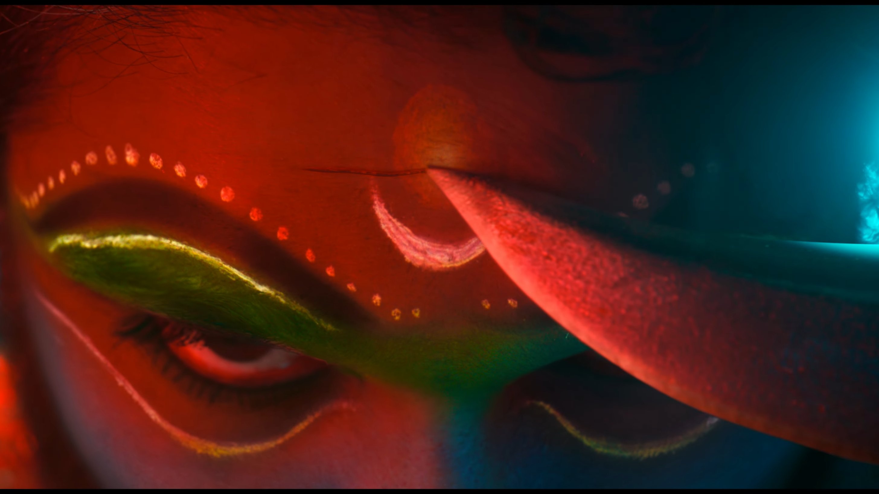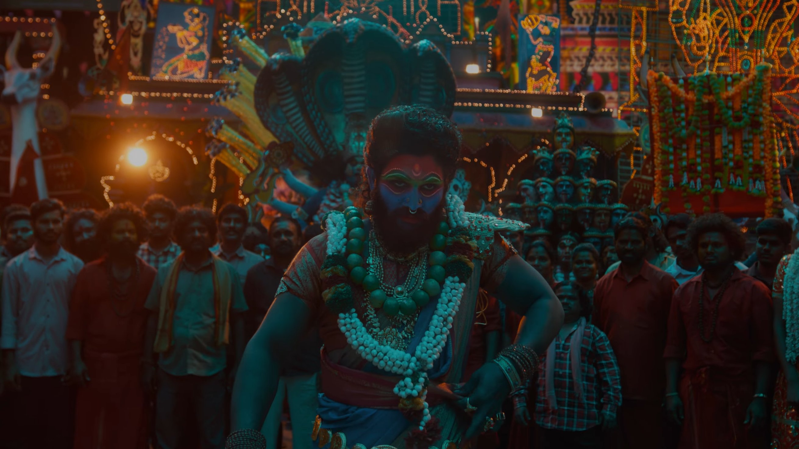 पुष्पा 2 के टीजर की शुरुआत एक मंदिर से होती हैं। जहां जतारा मनाया जा रहा है, जो मंदिर का उत्सव होता है। इसके बाद फ्रेम में अल्लू अर्जुन की एंट्री होती है। एक्टर नील पट्टू साड़ी के साथ झुमका, घुंघरू, चूड़ियां, नथुनी और सोने के जेवर से पहने हुए नजर आते हैं। इसके साथ ही अल्लू अर्जुन ने अपने शरीर पर नीले रंग बॉडी पेंट लगा रखा है।