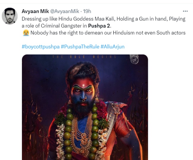 पहली बार जिसने भी अल्लू अर्जुन के लुक को देखा वो अपलक निहारता ही रह गया। पोस्ट में साड़ी पहने पुष्पा ने बड़ी सी बिंदी लगाई हुई है, उनका रूप काली माता जैसा लग रहा है। सोशल मीडिया पर 7 अप्रैल से बवंडर मचा हुआ है। लोगों का कहना है कि 24 घंटे बाद भी उनके जेहन से पुष्पा का लुक जा नहीं रहा है। पहली बार देखो तो दिल सहर उठता है।