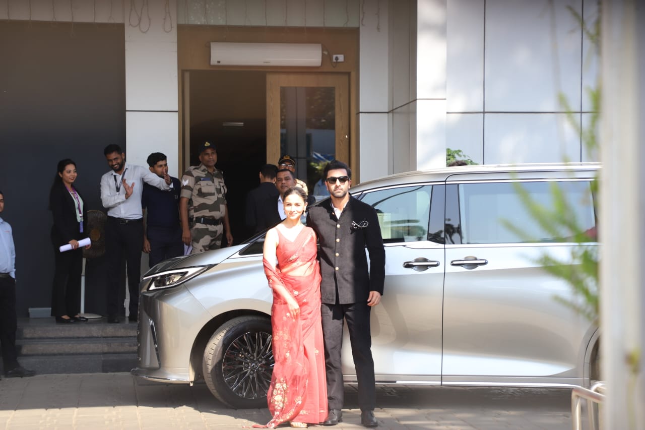 एक तरफ जहां आलिया भट्ट रेड कलर की साड़ी में नजर आईं। वहीं ब्लैक कलर के बंद गला सूट में रणबीर काफी जच रहे थे। वहीं रेड कलर के सलवार सूट में करीना कपूर ने पैपराजी को देखकर वेव भी किया। इस दौरान सैफ अली खान व्हाइट कलर के चूड़ीदार के साथ नेहरू जैकेट में नजर आए। वहीं नीतू और करिश्मा आइवरी अनारकली में नजर आईं।