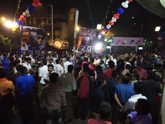फिल्म 2.0 का पहला शो सुबह छः बजे शुरू हुआ जिसके लिए फैन्स चार बजे तडके ही पहुँच गए थेl कई जगह लम्बी लम्बी कतारें देखी गईं l