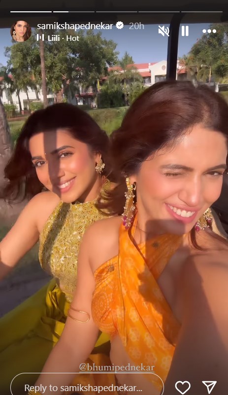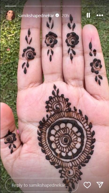 भूमि पेडनेकर की बहन समीक्षा पेडनेकर ने मेहंदी की फोटो शेयर की है। इसी के साथ उन्होंने भूमि के साथ मस्ती भरे पल की एक झलक भी दिखाई है।