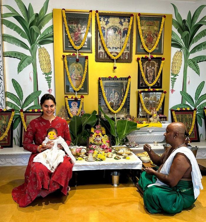 उपासना ने बेटी क्लिन कारा संग मनाया पहला वरलक्ष्मी व्रतम