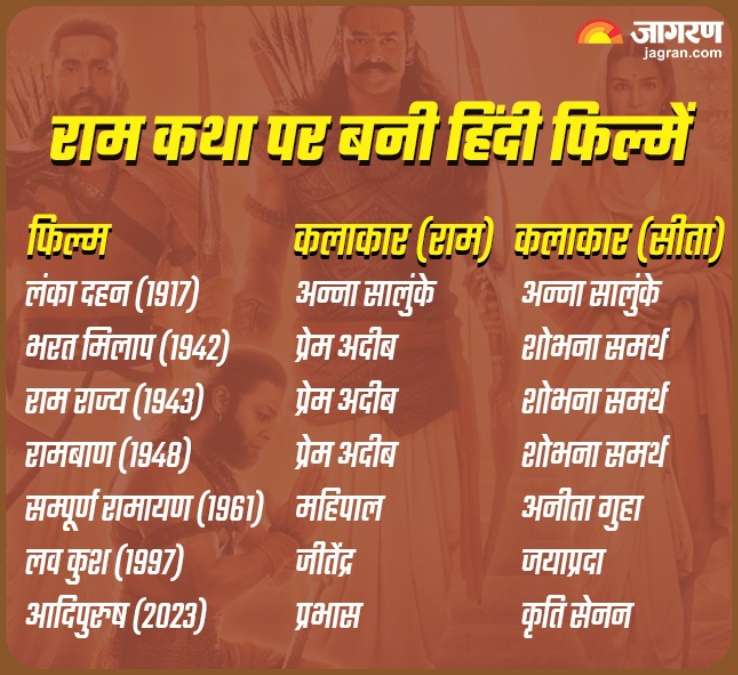 रामायण पर अब तक कई फिल्में और सीरियल्स बन चुके हैं। इसमें भगवान राम और माता सीता के किरदार को अलग-अलग कलाकारों ने निभाया है। बता दें कि पौराणिक विषयों पर फिल्में बनने का चलन भारत में साल 1917 के आसपास शुरू हुआ था। साल 1917 में आई फिल्म लंका दहन हिंदी सिनेमा में रामायण पर बनी पहली फिल्म थी।
